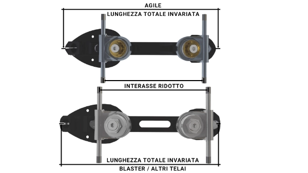 Pour mieux expliquer, lorsque l'on opte pour un montage court pour gagner en agilité, on a le souci que la base de la platine est lui aussi plus court. Par exemple, vous prenez généralement des platines avec entre-axes de 160mm (taille 41) mais vous voulez passer sur du 150mm. Il sera alors délicat de bien placer la platine sous la chaussure. Si vous voulez garder le frein à sa place optimale, la platine sera forcément plus vers l'avant et si vous voulez mettre la platine plus en arrière, le frein sera lui aussi en arrière. Roll-Line a donc conçu cette platine Agile pour les adeptes des montages courts. Ainsi la platine Agile en taille 160 (pour une pointure de 41) vous offrira un Entre-Axes de 150mm, mais la longueur habituelle d'une platine de 160mm. Pour un Entre-Axes réduit, la platine offre une longueur standard et le frein sera à sa bonne place.